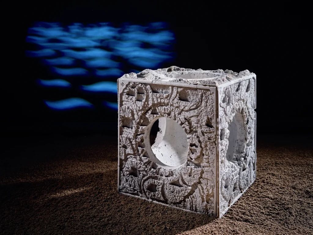 Designed with exceptional detail, its Nature-Inclusive Design (NID) incorporates advanced 3D-printed textures to promote colonisation by local fish, crustaceans, corals and kelp species. Each unit can be customised by size, texture and internal passageways, ensuring optimal performance for specific marine environments.